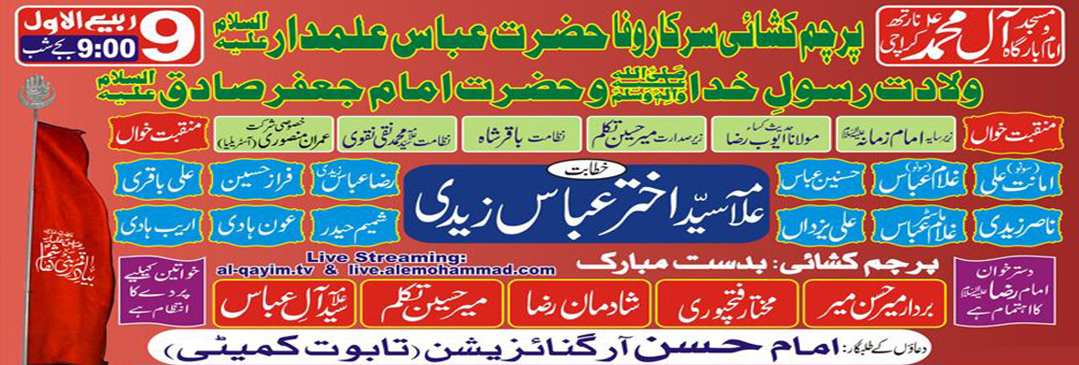 9 Rabi Awal Parcham Khushai Ghazi Abbas Alamdar A.S Live From Imam Bargah AleyMohammed North Karachi